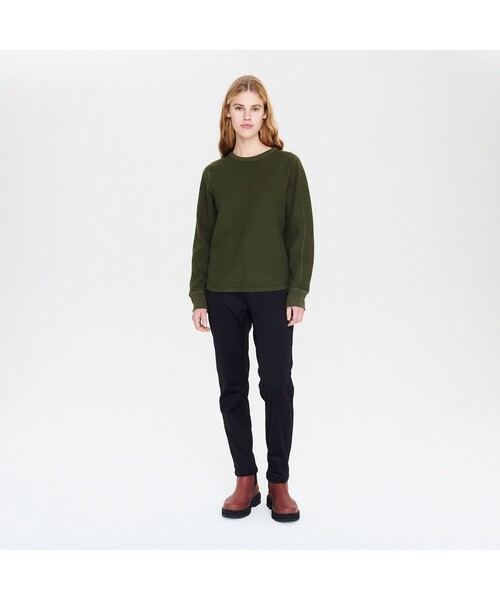 1枚着にもベースレイヤーにも活躍する便利な1枚 -素材の特徴- コットン×ポリエステル混紡のリサイクル素材 -デザインの特徴- コーディネートしやすいシンプルなデザイン -サイズ感- レギュラーフィット 装飾を控えたミニマルデザインで、どんなコーディネートにもマッチするワッフルニットの長袖Tシャツです。コットン×ポリエステルの混紡素材で、着心地抜群。リブ編みの衿首と、袖口左側のAIGLEの刺繍がポイントです。