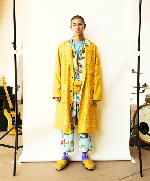 SEVESKIGジャカードの産地でもある群馬県桐生市で作成したオリジナルTIGERカットシ゛ャカート゛の上からインクジェットプリントを施したチェスターフィールドコート。60'sの古着で見られる小紋柄を『Re Tweet』マーク、Crime pradaiseの『C』の柄に置き換えた柄となっています。裏地はAG+糸を使用したメッシュ素材仕様になっており、メッシュ面を表にして着用も可能です。自転車やバイクに乗る際に裾の内側にドットボタンを止める事で、裾をチェーンに巻き込まない仕様になっています。またオールインワン的な着用の仕方も可能です。ブライトレーヨン糸とレーヨン糸を使用し、虎のジャカードを浮き立たせています。レーヨン糸は綿糸よりも吸水性に優れており、夏には最適な素材です。※生産上の都合で納期が多少前後する場合もありますので、御了承下さい。※画像はサンプルですので実際の色味と変更の可能性もございますのでご了承下さい。SEVESKIG・・・“ありそうでないもの”をコンセプトとしたレザーを中心としたコレクションはテーラリングに裏付けされたパターンからなる構築的なデザインと、VINTAGEに見られる質感を融合させ一人の職人が全行程を行う“丸縫いレザー”という前代未聞の商品を展開する。大事なのは MADE IN JAPAN であること。日本の革職人の確かな技術に、デザイン・加工という遊び心を加える。将来自分たちが作った服が、買ってくれたお客様の子供、さらにはその孫たちにも着てもらえることが目標。大手アパレルメーカー経験後、東コレブランド、国内ドメスティックブランドのディレクション兼MDを担当したディレクター。v同じく大手アパレルメーカーから国内ドメスティックブランド、フリーランスで数々のブランドのデザインで活躍したデザイナー。大手アパレル在籍、ロンドンのSavile Rowで修行の経験を持つパタンナーの3人がスタートさせる。FDMTL(ファンダメンタル)やBACKLASH(バックラッシュ)とのコラボレーションも発表され注目を集めています。