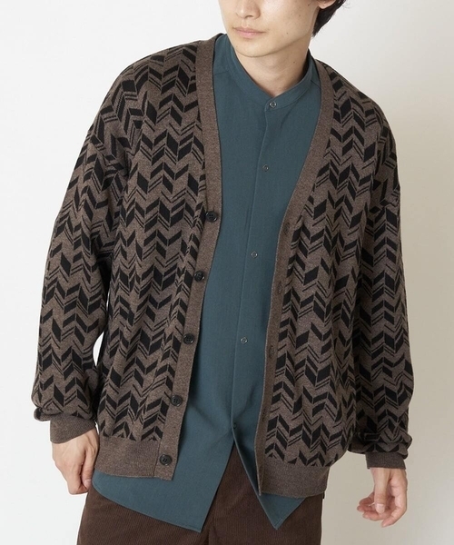 ◆今季トレンドの柄をニットで表現した今どききれいめカーディガン◆【デザイン】アーガイル柄やへリンボン柄を用いた、着こなしのアクセントになるカーディガン。シルエットはゆとりのあるワイドシルエットでこなれ感を演出できます。存在感のあるアイテムで、取り入れるだけで今季らしい着こなしになるトレンドアイテムです。ユニセックスでの着用も可能なため、女性にもオススメです。【素材】a.v.vで作成した柄感がオリジナルなアクリルコットンニット。程よく肉感があり、アウターとしてインナーとしても重宝する一枚。ご自宅で気軽に洗濯機洗いができるためデイリーユースに着用できるのも嬉しいポイントです。【スタイリング】インナーにはシンプルなシャツやカットソー合わせで柄感を引き立てるのがオススメです。中間着としてアウターのインにも着用できるため着用期間も長いです。ボトムはきれい目スタイルであればスラックス合わせ、カジュアルスタイルであればゆとりのあるパンツとあわせるとバランスが良いコーディネートの完成です。----------------透け感:なし裏地:なし伸縮性:あり光沢感:なし生地の厚さ:普通----------------≪お気に入り登録機能の使い方≫■商品のお気に入り登録(ハートマークをクリック)再入荷通知や値下げ等、お得なご案内を受けることができます。----------------※50/XL サイズはWEBを含めた一部店舗限定販売です。※柄の出方や繋ぎ目が画像と異なる場合がございます。 ご指定は出来ませんので予めご了承下さい。※お使いの液晶環境により、色味が多少異なる場合がございます。予めご了承ください。※サンプルにて撮影しておりますため、お届けの商品と仕様が若干異なる場合がございます。予めご了承ください。