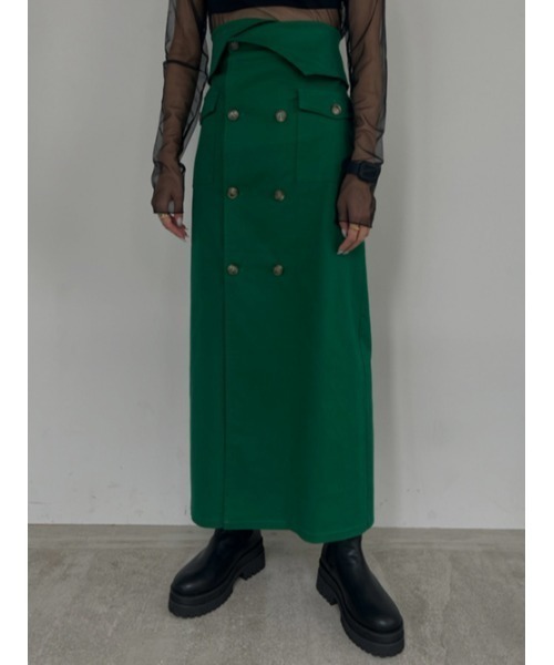 ■デザインボタンやサイドポケットのディテールなど細部にトレンチコートをイメージしたシックなデザインのIラインスカート。 ハイウエスト仕様のためスタイルアップ効果も期待できます。 ウエスト部分を折り返してあげることで違った雰囲気でご着用頂け、丈感の調整もしていただけます。■素材感・程よくハリのある生地感・透け感:なし■スタイリングIラインシルエットで存在感のあるスカートはトップスをINしてすっきりとまとめたスタイリングがおすすめ。 カラータートルを仕込んだり、ブラウスやシアートップスなど幅広くマッチしてくれるためシーズン長く着回して頂けます。 Bulky coron trenchとセットアップでの着用も◎※モデル着用画像はイメージのため、実際の商品のお色と異なる場合がございます。 商品の詳細画像が実際の商品に近いお色味となります。『AMAIL (アマイル)』MATURE&JILL『エレガンスな服をスタイリングでカジュアルに、カジュアルな服をスタイリングでエレガンスに』トレンドのファッションを自分らしくスタイリングしたい、大人だからできる、余裕を感じられるファッションを楽しめるアイテムを提案します。instagram:@amail_official『ディレクター』猪島 愛ファッションや美容、ライフスタイルについて幅広く配信。女性らしいカジュアルスタイリングが人気。instagram:@aiinoshima三方美穂一児のママ。カジュアルになりすぎないママファッションから美容、子育てについても幅広く配信。キレイめカジュアルスタイリングが人気。instagram:@mihomikata----------------------------※ご注文いただいた予約商品のお届け時期の確認は、注文履歴ページより行えます。【お買いものをもっとお楽しみいただく為に】▼商品のお気に入り登録(ハートマークをクリック)完売カラーの再入荷通知や、ラスト1点の通知、セールの通知をお知らせいたします。▼ブランドのお気に入り登録新商品や再入荷など、いち早くブランドのお得な情報を受け取ることができます。