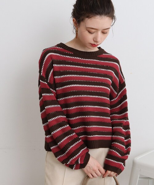 【デザイン】程よい透け感とマルチボーダーの組み合わせが可愛いニットプルオーバー!トレンドのマルチカラー配色がアクセントになっていてコーデの主役にぴったりな1枚に仕上がっています。少し短めな着丈とゆたっりとしたサイズ感でレイヤードもしやすくなっています。【生地感】アクリル素材を使用したさらっとしたニット地です。※こちらの商品は網目が粗いデザインのため、お手持ちのインナーを合わせて頂くのがお勧めです。#CutieBlonde#Cutie#cutieblonde#cutie#キューティブロンド#キューティ#20代#30代モデル情報:身長160cm B78 W59 H85 着用サイズ:00(FREE)店舗へのお問い合わせ商品番号:256-15300●製品寸法:00(FREE):着丈51cm B102cm 袖丈50cm 肩幅54cm備考: