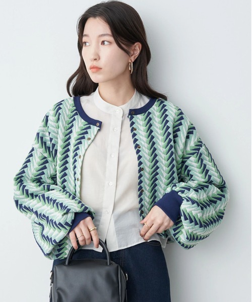 ジオメトリック柄のフクレジャカードで、モダンなデザインに仕上げたカーディガン。ネックと袖口の配色もおしゃれなアクセントに。前後どちらでも着用可能な2WAY仕様です。ふっくらとしたボリュームのある袖が愛らしく、コンパクトな着丈でスタイルアップ効果も後押し◎コーディネートにプラスワンするだけで、スタイリングの鮮度も高まりそうなアイテム。透け感[無し]裏地[無し]伸縮性[やや有り]光沢感[無し]生地の厚さ[普通]付属品[無し]ポケット[無し]● earth music&ecology ●(アースミュージック&エコロジー)人とライフスタイルと環境に寄り添い、エントリーアイテムとトレンドアイテムをMash upさせ、いつでも心地よく過ごせる、自由な大人の女性を表現します。▼ 商品のお気に入り登録がおすすめです ▼商品ページ内の「♡」ハートマークをクリック。完売時の再入荷や、最後の1点の通知、コーディネート画像がアップされたとき、お得なお値下げの際の通知を受ける事ができます。【お知らせ】ページでも通知が確認できます。