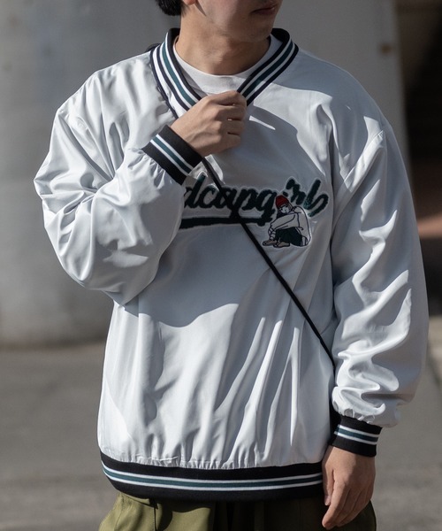 【Red Cap Girl/レッドキャップガール】 独特なタッチ,自然体で等身大の【Red Cap Girl】 タイトルの「レッドキャップ」をアイコンにしたユニセックスブランド。レトロ感あふれるオシャレな絵のタッチが魅力の商品です。 【デザイン・シルエット】 Red Cap Girlのスタジアムプルオーバーになります。 ポリタフタ素材のなめらかな肌触りと軽い着心地。 身幅を広めにとることで、トレンドのシルエットかつレイヤードのしやすいアイテムに。 ガールイラストとサガラ刺繍のロゴが可愛いデザイン。 首元、袖口がリブ仕様になっているのでストリートな雰囲気もプラス。 【コーディネート】 デニム、チノパンでカジュアルに、カーゴパンツやワイドパンツで旬な着こなしも。 ストリート、スケータースタイルはもちろん、古着MIXスタイルにもオススメです。 インナーも気温に合わせてTシャツ、シャツ、パーカーと合わせるアイテムを選びません。 ※トップス基準になります。 【厚み】薄い○●○○○厚い 【柔かさ】硬い○○○●○柔かい 【伸縮性】なし○○●○○あり 【透け感】なし●○○○○あり 【着丈】短い○○●○○長い 【身幅】細い○○●○○大きい 【ユニセックス】 メンズ、レディース問わずユニセックスで使える商品です。 カップルや夫婦でシェアして使えるのも嬉しいポイント。 【カラー展開】 ホワイト ブラック グリーン ブルー ▼JOHN'S CLOSET (ジョンズクローゼット)▼ アウトドア、スポーツ、ミュージック、アート、多彩な趣味を彩るファッション。 そのすべてのファッションがこのクローゼットに… その日、その時の気分で着れるようなファッションアイテムをご用意いたします。 No fashion, No life 〔お買い物をお楽しみいただく為に〕 ■商品のお気に入り登録 完売カラーの再入荷、セール情報、ラスト1点通知を受けとることができます。 ■ブランドお気に入り登録 新商品の入荷や、再入荷などお得な情報を受け取ることができます。