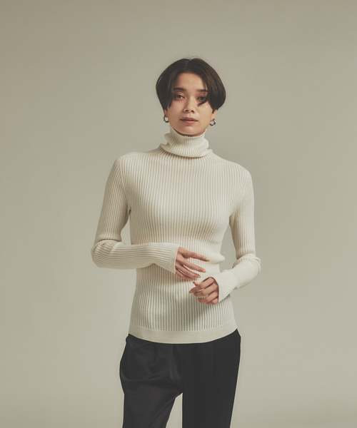 *Detail*ロングセラーの定番タートルニット。 編み目のないすっきりしたシルエットと快適な着心地が特徴のシームレスのニット。 洗濯を繰り返しても、型崩れしにくく、毛玉にもなりにくい為、リピーターの多いアイテム。 伸縮性も優れているので、身体のラインにフィットし、女性らしいシルエットで着ていただけます。 *Coordinate* オンオフで兼用して着れるニット。 テーパードパンツからモードっぽくデニムにも、どんなスタイルとも相性抜群◎ ワンピースと合わせたレイヤードスタイルもおすすめ。 ベーシックで優秀なアイテムなので、色違いも持っておきたいアイテム。 ホワイト モデル:H166 B78 W57 H80 着用サイズ:F ブラック モデル:H171 B80 W58 H86 着用サイズ:F オレンジ モデル:H171 B80 W58 H86 着用サイズ:F チャコールグレー モデル:H166 B78 W57 H80 着用サイズ:F