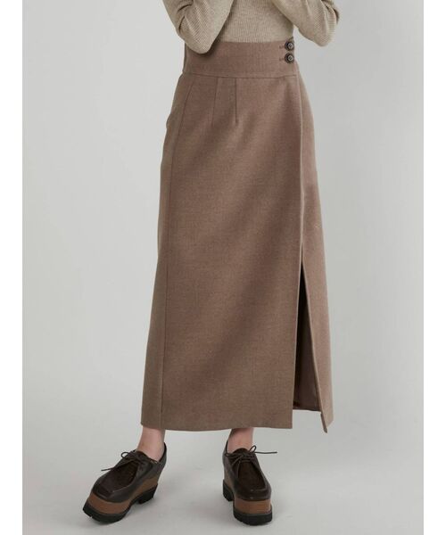 【2022 AUTUMN&WINTER COLLECTION】 セットアップで着用可能! キレイめコーデ派必見のナロースカート◎ ■アイテム 厚みのある暖かいコート素材で作ったナロースカートです。 すっきり見えるシルエットにこだわって、 深めに入ったタックディテールが脚長まっすぐ見せ効果あり。 ムルーアらしい太め幅のウエストベルトなのでトップスをINするとさらに腰高効果も〇 ディテールが少なく合わせやすいデザインなので、 ウエストベルトにダブルボタンでアクセントを付けました。 柄のないニットやブラウスなどの時はチェック柄がおすすめ、 ケーブルや柄のあるトップスの時は無地がおすすめです。 スニーカーやサイドゴアブーツでカジュアルダウンしても、 ショートブーティで女っぽスタイルにも〇 タイトスカートシルエットなのでロングコートからスカートが チラ見えしても足元がすっきり見えるので合わせやすく、 冬中使えるスカートです。 ■同素材のハーフパンツはこちらを検索↓ センタープレスハーフパンツ・012260700501 ■セットで着られるジャケットはこちらを検索↓ ダブルテーラードジャケット・012260100301 -------------------------------------------- 裏地:あり 生地の厚さ:やや厚手 サイズ感:普通 伸縮性:なし -------------------------------------------- 【知って得する便利機能◎ 】 ■商品のお気に入り登録 再入荷時、ラスト1点の時にお知らせします。 ■ブランドのお気に入り登録 新商品やお得な情報など、いち早くゲット! ぜひご活用ください! ※着用画像はフラッシュの加減で実際の製品と色味等が異なる場合がございますので、生地のズームアップ画像をご確認ください。 ※ご利用の端末画面の設定により実際の商品と色味が異なる場合がございます。