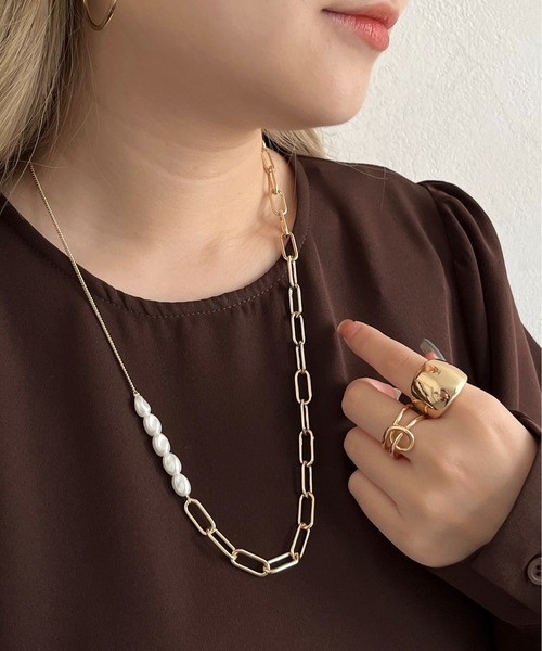 コーディネートのアクセントになるパールチェーンネックレス 【ポイント】 ●パールとチェーンで大人可愛い印象に ●存在感のあるネックレスでシンプルなコーデに取り入れる だけで華やかに! ●キレイめでもカジュアルなスタイルにも合うアイテム ●季節問わず使っていただけるのもポイント! ※商品のお取り扱いに関しましては、商品に付属の アテンションカードをご覧ください。 ※撮影場所やお使いのモニター環境により若干お色味が 異なる場合がございます。 特にロケの撮影では明るく見える傾向にございます。 --------------------《Information》-------------------- 【商品のお気に入り登録】 →カートに入れる右側の【♡マーク】をクリック! 完売カラーの再入荷通知やラスト1点の通知、 セールの通知を受け取ることができます。 【ブランドのお気に入り登録】 →ブランドタグのページから【♡お気に入りショップに追加】 をクリック! 新商品や再入荷など、ブランドのお得な情報を いち早く受け取ることができます。 是非ご登録頂き、お買い物をお楽しみください◎