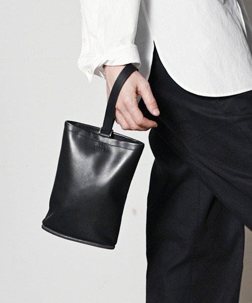 底面に靴底と同等のレザーソール配したシューバッグ。 床に置いても傷が気にならず、自立するのが特徴。 内側にはキーや小物などを入れる為のミニポケットが付属。 ショルダー紐は長さの調節が可能です。 スムース素材にはシューズと同じ肌目の美しいキップ素材を、スエードには毛足が短く汚れにも強いイタリアンスエードを使用。 Sizeinfo. Height 235mm Width 175mm Depth 65mm EARLE/アール日常のエレガンスを。 クラシックスタンダードの持つ普遍的な美しさを尊重しながら『エレガント』『シンプル』『日常性と非日常性』をベーステーマとし、様々な要素を複合して構築させたプロダクトの追及をする。 レザーシューズ、ブーツ、バッグのラインナップ。 ダッドスニーカーやミュールやサンダルも展開。 マテリアル&製法 独自に製作したカップインソールを全レザーシューズに取り入れ、中敷き材にはムレや滑りの少ないカウレザーを使用。 通常のレザーシューズとは異なる履き心地良さと、履く人自身の足に馴染んだインソールとなる。 シューズのスタイルに合わせ独自のレシピによって開発したレザーをベースに、国内外の厳選したマテリアルを使用。 持ち主が完成されることを目標に過度な仕上げや加工はせず、履く人のスタイルに合わせ経年変化を味わえるように仕上げた。 主に強度とケアのし易さのあるマッケイ製法を取り入れ、デザインに合わせその他ステッチダウン製法やセメンテッド製法などのシューズのラインナップ。 Designer 髙橋 亮平/Takahashi Ryohei 1985年大阪府生まれ。 ファッション専門学校でシューズを専攻し卒業後、大手デザイン会社で数ブランドのレディースシューズのデザイナーを経て、メンズシューズブランドnil admirariのデザイナーとして6年間活動。 メンズのクラシックスタンダードをベースに、レディースのエレガントな要素やテクニック加えた『EARLE』を提案する。