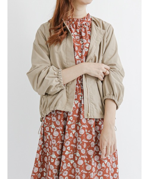 【日比谷花壇コラボ 2022Autumn】 ・短丈でシンプルで合わせやすいノーカラーブルゾン。 開けた時にちらりと覗くチェック×花柄のプリントデザインもおしゃれなアクセントに。 ・柄はチェックをベースにお花を散りばめた秋らしいデザイン。 秋の定番のお花、コスモスをメインに繊細なラインで表現しています。 ・裾にはドローコードを配し、機能性も申し分なし◎ カジュアルにもガーリーにもスタイリングが楽しめる1着です。 【季節の花】コスモス/スターチス/クリスマスローズ/ブプレリウム ================ 透け感[なし] 裏地[あり] 伸縮性[なし] 光沢感[なし] その他 ポケット[あり] 袖口・裾ギャザー 季節[秋] ================ ※商品画像は、撮影環境やお客様のご利用のPC・スマートフォンの モニター環境などにより実物と色味に差異がある場合がございます。 【その他採寸】 F 着丈:[前]54cm[後]60cm