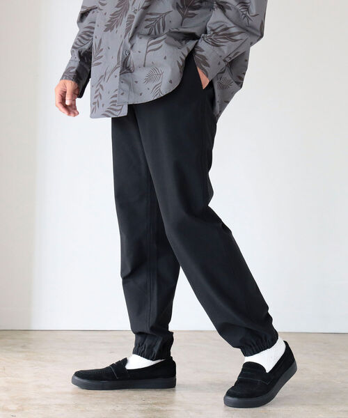 オンオフで活躍するパンツ■デザイン様々なスタイルにマッチするすっきりとしたイージーパンツ。ウエストの後ろ側にゴムを入れて着用もスムーズなデザイン。コードでウエストサイズも自由自在に調整が可能です。ベルトを付けたきれいめスタイルもおすすめです。■サイズ腰回りにややゆとりを持たせたスマートなシルエット。裾にゴムを入れた仕様で足元がすっきりとしたテーパードタイプです。■素材ケアが簡単な合繊素材にソフトで、肌馴染みの良いコットンをミックスした中肉の素材を使用。伸縮性にも優れた快適な着心地の生地です。Model:H178 B90 W77 H91 Size:L※光の当たり具合やパソコンなどの閲覧環境によって、実際の色味と異なって見える場合がございます。予めご了承ください。※商品の色味は商品単体で撮影した画像をご参照ください。