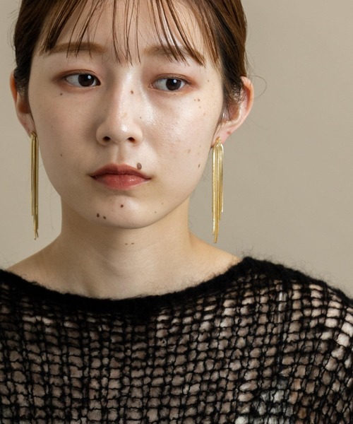 【主役級のロングシルエット】スネークチェーンで仕立てたフリンジデザインが顔周りを華やかにしてくれるロングピアス。動きに合わせて揺れるニュアンスたっぷりのディテールにも注目!カジュアルにも綺麗めにも取り入れていただけるアイテムです。※メッキ製品は変色してしまいがちです。こまめなお手入れで防止してください。アレルギー体質の方や体調が低下している方など、かぶれることがありますので十分にご注意ください。※ステンレスはニッケルを含有しておりますが、それが溶け出すことが非常に少ない為、アレルギーを引き起こしにくい金属のひとつです。錆びにくく、腐食や酸、熱、酸化に耐えるすぐれた特性を持ちます。※アレルギーを引き起こすと言われているニッケルの含有量を極力少なくしたものです。※その他お取り扱いに関しましては、商品に付属のアテンションタグをご覧ください。※アレルギーの原因はさまざまです。すべての方に起きないことをお約束するものではありませんので、予めご了承くださいませ。また、症状が出た場合は直ちに使用をお控えください。※商品画像は、光の当たり具合やパソコンなどの閲覧環境により、実際の色味と異なって見える場合がございます。予めご了承ください。※商品の色味の目安は、商品単体の画像をご参照ください。