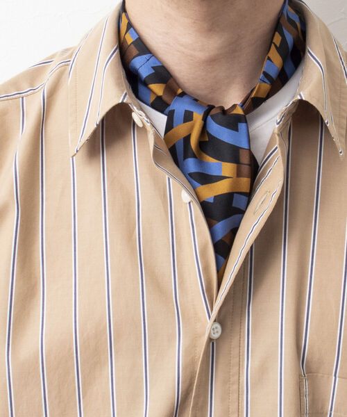 イタリアART(アート)社の生地を使用したオリジナルスカーフタイ。プリントは現代美術とファッションの融合したコンテンポラリーアートをテーマとしたデザインで、襟付きのシャツからバンドカラーシャツ、さらにはTシャツやポロシャツにまで手軽に巻くことができ、首回りを華やかにしてくれます。芯材は使用せずにあえてスカーフのように薄くて軽い仕上がりで普段の装いをエレガントに演出してくれるアイテムです。世界有数のシルクの産地であるイタリア・コモ地方で最高級生地を選定し、国内で縫製を行っています。 <スカーフタイの巻き方>1.襟付きシャツやバンドカラーシャツの場合。 ネクタイを結ぶようにプレーンノットや、片結びで巻き、剣先を出して着用されますとエレガントに見えます。2.クルーネックやモックネックなどのTシャツの場合。 首元で一度巻きそのまま剣先をTシャツの中にしまいます。 首元からちらっと覗かせるように着用されますと綺麗に見えます。※店頭及び屋外での撮影画像は、光の当たり具合で色味が違って見える場合があります。商品の色味は、スタジオ撮影の画像をご参照下さい。※商品画像に関しては出来る限り忠実に表示出来るよう努めておりますが、お客様がご利用のモニターの設定及び特性により、実際の商品と比較し色味に若干の誤差が生じる場合があります。※画像の商品はサンプルとなりますので実際の商品と仕様、加工、サイズが若干異なる場合がございます。※お取扱い上のご注意アテンションタグを必ずご確認の上、着用又はお取り扱い下さい。