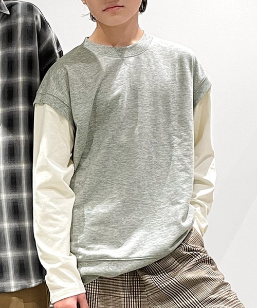 シルエットがゆったりとしたドロップショルダーのベストフェイクレイヤードTシャツです。 身頃は裏毛よりも少し薄くて軽いミニ裏毛を使用しています。 袖のところで天竺とドッキングしているので、重ね着しているようなおしゃれなデザイン。 合わせやすいカラー展開が毎日のコーデのお助けアイテムに! 1枚でサマ見えするので組み合わせを考える必要も少なく、朝の忙しい時間にも便利です◎ シンプルで大人っぽいデザインなので、デニムやチノなど、どんなパンツにも合わせやすい万能な1枚☆ 【モデル】身長159cm、体重44kg、着用サイズ:170cm(ベージュ) 身長149cm、体重37kg、着用サイズ:160cm(グレー)