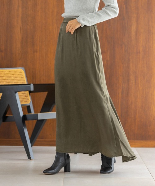 前後の切り替えで光沢感のあるドレープスカート ーーー ★おすすめポイント★ [1]滑らかな光沢感と落ち感があるサテン素材 [2]バック切り替えデザインのナロースカート [3]腰回りはタイトめで女性らしいシルエット ーーー [fabric] 滑らかな光沢感と落ち感があるサテン素材。 熱加工による縦に筋の入ったような独特な表情感のある上質な生地感。 [design] バック切り替えデザインのナロースカート。 裾に向かってドレープを入れた前後で表情が違うのがポイント。 腰回りはタイトに作っており女性らしいシルエットに。 [styling] ボリュームニット合わせで、コントラストをつけたトレンドルックなスタイリングがおすすめ。 ※屋外での撮影画像は光の加減で実際の商品より明るく見えたり、風合いが異なって見える場合がございます。 商品の色味はスタジオ撮影の画像を参考にして下さい。 ------------------------------------- ≪お買い物をよりお楽しみいただくために≫ ◆商品のお気に入り登録(ハートマークをクリック) 完売カラーの再入荷通知や、完売間近の通知、セールの通知も受けることができます。 ◆ブランドのお気に入り登録 新商品や再入荷など、いち早くブランドのお得な情報を受け取ることができます。 -------------------------------------
