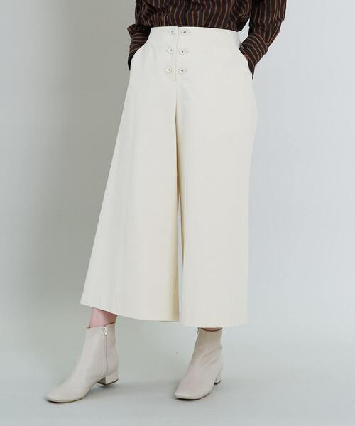 【素材】 微起毛されたコットンチノ素材です。 【アイテム】 フロント釦ディテールが目を引く、シンプルキュロットです。 定番のエンジニアブーツと合わせたコーディネートがお勧めです。 *後ろウエストゴム+ヒモ仕様 ※オフホワイトはモデルサイズのサンプルを着用しているため、他のカラーと見え方が異なります。 サイズ表を参考の上ご購入ください。 ---------------------------------------------------------------------- ■洗濯:家庭洗濯× ■透け感:なし ■裏地:なし ■伸縮性:なし ■光沢感:なし ---------------------------------------------------------------------- 【ブランド情報】 congés payés/コンジェ ペイエ congés payés =有給休暇 リラックスできるコンフォータブルな服。天然素材をベースに、ライフスタイルに寄り添うエフォートレスアイテムを提案します。 ---------------------------------------------------------------------- 【お気に入り登録】がオススメです!! □商品のお気に入り登録□ 再入荷、残り1点、セールなどの通知を受け取ることができます。 →商品ページ ♡ をクリック ■ショップのお気に入り登録■ 新商品や再入荷、クーポン発行、ショップニュースなど、いち早くショップの情報を受け取ることができます。 →「♡お気に入りショップに追加」 をクリック ----------------------------------------------------------------------