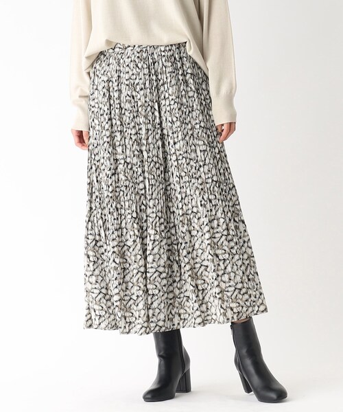 今年らしいレオパードプリントがスタイルに鮮度をプラスする、プリーツフレアスカート 【デザイン】 ・ニュアンスのあるオリジナルのレオパード(ヒョウ柄)プリントをONしたプリーツスカート ・軽めの素材にプリントし、さらにプリーツ加工を加えることで普段のスタイルに取り入れやすい一枚 ・大人っぽく、安心のやや長めの丈感 ・ウエストバックはゴム仕様で穿き心地も快適 ※ポケットなし 【素材】 ・やや軽めのポリエステル素材を使用 ・プリントにプリーツを加えることで動きを出し、ほどよいボリューム感に ・軽めの素材感で、これからの時期のニットやスウェット等との合わせも◎ ・シワになりにくく、ご家庭でのお洗濯が可能な機能性もうれしいポイント ※裏地あり ※WEB限定サイズ:36(S) 42(LL) こちらの商品は主に秋に着用いただける商品です。 モデル情報:身長165cm B72 W57 H84 着用サイズ:38(M) 店舗へのお問い合わせ商品番号:637-75038 ●製品寸法: 36(S):W64~82cm H94cm 総丈82cm 38(M):W66~84cm H96cm 総丈83cm 40(L):W69~87cm H98cm 総丈84cm 42(LL):W72~90cm H100cm 総丈85cm 備考: