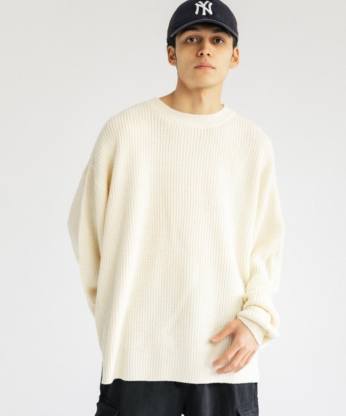 ダボっとしたルーズ感がこなれた雰囲気に! ワードローブの即戦力として活躍してくれること間違いなしのトップス 【デザイン】 ■年齢や系統に問わず使えるベーシックデザインのアイテム 一枚着でもインナーでも様になる高い着回し力が魅力のクルーネックニットプルオーバー。 無駄のないシンプルなデザインなのでどんなボトムスとも相性抜群。カラーも豊富でいろんなスタイリングに使える優れもの。 シンプルなニットだからこそサイズ感と着た時のシルエットにこだわり抜いた1枚です。 ■ ザックリとしたビッグシルエット 肩幅、身幅に余裕を持たせたオーバーサイズでヌケ感を楽しめるサイジング。 ゆったりとした絶妙なルーズさで、着こなすだけでトレンド感のあるコーデに。 リラックス感もあり、ルームウェアやリラクシングウェアの部屋着としても◎ ■ 着回しやすいユニセックスデザイン 男女を問わず着用可能なデザインで、カップルや家族でシェアしたりプレゼントにもおすすめ。 オーバーサイズに着てこなれ感を出したりと、女性の方にも楽しんでいただけるアイテムです。 女性はヒップまで隠れる長めの着丈で腰回りをカバーしてくれます。 【ファブリック】 ■ウールのチクチク感が無い肌触りの良いアクリル生地 アクリルの生地は柔らかく、肌触りが良いので、チクチク感が苦手な方でもオススメです。 ゆったりめのサイジングを取り入れ、サラッとした程よい生地感で着心地も抜群です。 【コーディネート】 カーゴパンツやワイドデニムなど太めのボトムスと合わせたスケータースタイルや、トレンドのフレアパンツやスラックスなどと組み合わせた現代風なモードスタイルにも◎ ニットキャップやバケットハットを合わせると、更に旬なスタイリングでまとまります。 男女共にユニセックスで着用できるので、女性のストリートスタイルにも最適! アイテム次第で様々なコーディネートを楽しめ、韓国ストリート、古着mix、カジュアルと様々なスタイリングと相性◎ ※画像の商品は光の照射や角度により、実物と色味が異なる場合がございます。 生地アップなどの詳細画像が、自然光で見た実物の色味に近くなっております。予めご了承くださいませ。 【お買い物をよりお楽しみいただくために】 ▼商品のお気に入り登録(ハートマークをクリック) 完売カラーの再入荷通知や、ラスト1点の通知、セールの通知も受けることができます。 ▼ブランドのお気に入り登録 新商品や再入荷など、いち早くブランドのお得な情報を受け取ることができます。