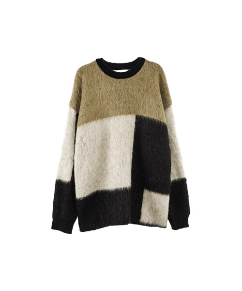 gracegift(グレースギフト)の「韓國暖色拼接針織上衣(その他・レディース・綠・F)」の1枚目の写真