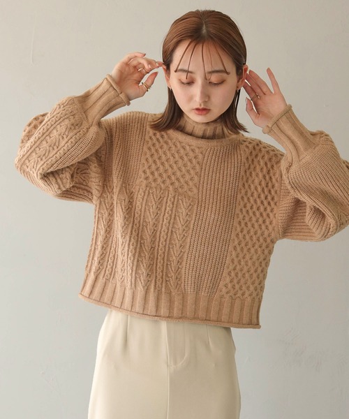 <<<パッチワークデザインで360度かわいいハイネックニット>>>【POINT】・4種類の編地を切り替えてリメイク風に仕上げたデザインニット。・裾と襟ぐりをロールにし、袖をパフスリーブにする事でかわいらしさを引き立てます。・袖と身頃で配置が変わるので、角度によって違う表情を見せてくれる1着です。・ショート丈のため、スタイルアップ効果もあります。【STYLING】・ボトムはスカートでもパンツでもどちらでも可愛いです。・ワイドパンツやデニムと合わせると、カジュアルな印象に。・スカートと合わせると、女性らしい印象に。※撮影場所により、実際の色味と若干異なる場合がございます。 あらかじめご了承くださいませ。【FABRIC】柔らかく滑らかな肌触りの素材を使用。チクチク感はなくストレスフリーで着ていただけます。◆透け感:なし◆厚み:厚手◆裏地:なし◆伸縮性:あり【お買い物におすすめの便利機能】※商品のお気に入り登録完売カラーの再入荷時や、ラスト1点の時、セール開始時にお知らせ致します。※ブランドのお気に入り登録新商品や再入荷、セール情報等、いち早くブランドのお得な情報を受け取る事が出来ます。ぜひご活用ください。