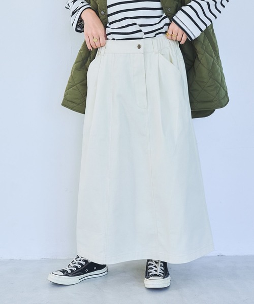 153cm以下の低身長さんに向けたシリーズ -my fit CLIP- ーーー 低身長さんにうれしい着丈のカジュアルスカート。 フロントがアシンメトリーになっていておなか周りがすっきり見えるデザイン。 ーーー カジュアルなデザインなので、甘めなブラウスなどとの合わせで女性らしく着るのがおすすめです。