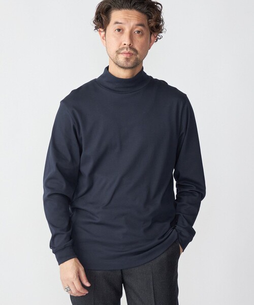 【FABRIC】 日本製、コットン素材100%を特徴としたモックネックのロングスリーブTシャツ。 ハイゲージで光沢のある、肌触りの良い素材です。 ストレッチ性もあるため、着心地にも優れたアイテムです。 【デザイン】 肌に直接触れたときの不快感を軽減させるため、また統一感を持たせるため、襟や袖口も同素材で仕上げています。 ハイゲージ編みのクリアな表面感で、ジャケットやカーディガンのインナーに最適なきれいめな仕上がり。 ハイネックの襟周りはゆとりを持たせることで、顔周りの詰まった印象を和らげると共に、着用感の良さにも寄与しています。 ※画像の商品はサンプルです。 実際の商品と仕様、加工、サイズが若干異なる場合がございます。