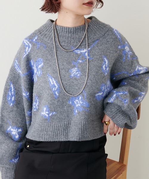 【2022AW natural couture】大人カジュアルを楽しめる、こだわりのフラワージャガードニット ■Design 短めの丈にドルマンスリーブと、可愛らしさを演出できるシルエット。 今季大注目の大ぶりの花柄は、大人っぽく上品なデザインです。 ショート丈なので足長効果が期待でき、首元はボートネックに近いのでお顔周りもすっきり見え、 たっぷりとした袖が、コーディネートに動きを加えてくれる一枚です。 ■Styling ショート丈ニットなので、ボトムはハイウエストがおすすめ◎ マーメイドスカートやフレアスカートはもちろん、ワイドデニムともバランスがとりやすいです。 アクセサリーは、長めと短めのネックレスを重ね付けすると花柄の大人上品さがより引き立ちます。 ■Fabri 編み目の詰まったもちもちとした柔らかさで着心地抜群◎ 表面は滑らかで生地に厚みがあるので、真冬まで長く着て頂け、 カラーは秋冬にぴったりなグレーとモカの2色をご用意しております。 ================== 透け感:なし 裏地:なし 伸縮性:あり 光沢感:なし 生地感:やや厚め =================== 【お気に入り登録でお得な情報がいっぱい】 ・「商品のお気に入り登録」で再入荷通知や、ラスト1点の通知、セール通知をいち早く受け取ることができます。 ・「ブランドのお気に入り登録」で新商品や再入荷など、お得な情報を受け取ることができます! ※店舗の入荷時期は商品によって異なります。店頭の在庫状況につきましては各店舗にてお問い合わせください。 ※撮影時の光の関係で、画面上の画像と実際のお色とでは若干の色差が生じる可能性がございます。また、ご覧いただいているモニター画面や、お使いのブラウザによっても、お色の違いがございますことをあらかじめご了承くださいませ。