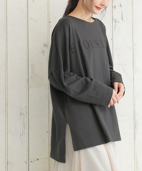 『ゆるっとお洒落見え。』 ヴィンテージ感のあるかすれプリントが目を惹く、ロゴロンT♪ 前後差のある着丈と脇スリットでお洒落な抜け感をプラスしたゆるっと絶妙シルエット。袖まで大きく配置された大人っぽいロゴがワンポイントになり、カジュアルスタイルがお洒落にキマります。 柔らかく心地よい肌触りが魅力の、綿混で滑らかなカットソー生地を使用。厚すぎない生地感だから、コーデ次第でロングシーズン活躍します♪ 今、好きな物、興味あることを自由な発想で表現できる≪ n'OrLABEL ≫。 「実用性と機能性、そして遊び感覚」、多面性を楽しめるピュアでモードなデザインライン。 シンプルながらも存在感を放つ≪n'OrLABEL≫かすれロゴプリントロンTです。