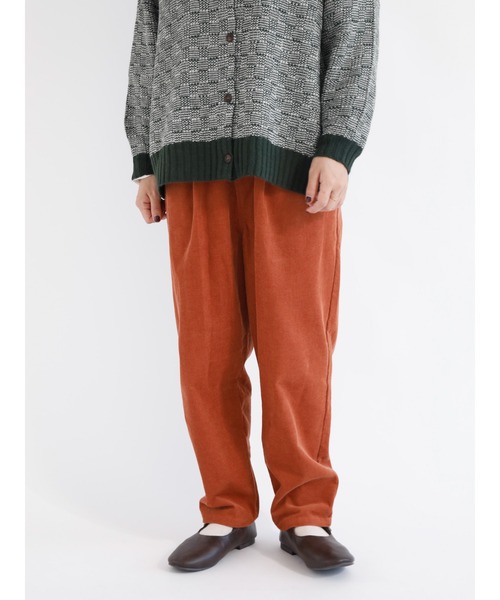 細畝の柔らかなコーデュロイ地で仕立てたテーパードパンツ。レッグラインをすっきりとした印象に見せてくれるのも嬉しいポイント。ウエスト部分は総ゴム仕様で安心感のある穿き心地です。シンプルなデザインでコーディネートにも取り入れやすく、デイリーユースに活躍してくれるアイテム。※商品画像は、撮影環境やお客様のご利用のPC・スマートフォンのモニター環境などにより実物と色味に差異がある場合がございます。
