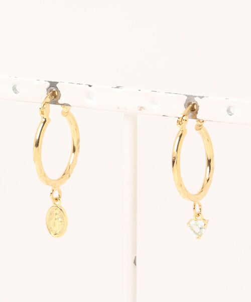 スペイン語で「生きる活力、命」という意味の『VIDA』からインスピレーションを受けた、ハート型の誕生石がポイント。聖母のメタルチャームとのアシンメトリーピアス。小ぶりで日常使いしやすいデザイン。耳元につけ、願いを込めて。 ◆BIRTHDAY STONE◆ その月に生まれた人の守護石として祈りをこめた誕生石。持ち主の特徴や人柄を引き出し高め、良い方向に導いてくれるとされています。誕生石で選ぶのはもちろん、お好みのカラーや意味合いでお守りとして選んでも◎ご自身用にはもちろん、ギフトにもおすすめのアクセサリーです。 ◆12種類の誕生石を使用しています◆ ●その他1 : 1月 JANUARY【ガーネット】努力の成果 ●その他2 : 2月 FEBRUARY【アメジスト】直感力 ●その他3 : 3月 MARCH【アクアマリン】充実感・安定 ●その他4 : 4月 APRIL【クリスタル】幸運・全ての浄化 ●その他5 : 5月 MAY【アベンチュリン】平穏・癒し ●その他6 : 6月 JUNE【ムーンストーン】2人の幸福 ●その他7 : 7月 JULY【カーネリアン】勇気・意思力 ●その他8 : 8月 AUGUST【ペリドット】知恵・邪気をはらう ●その他9 : 9月 SEPTEMBER【サファイア】誠実・慈愛 ●その他10 : 10月 OCTOBER【ローズクォーツ】恋愛運UP ●その他11 : 11月 NOVEMBER【トパーズ】友情・希望 ●その他12 : 12月 DECEMBER【ターコイズ】自信・行動力 ※こちらの商品は1点1点職人による手作りとなります。また天然石を使用しております為、形や色合いなど若干異なる場合がございます。あらかじめご了承ください。 Amina Collection Co.,LTD.