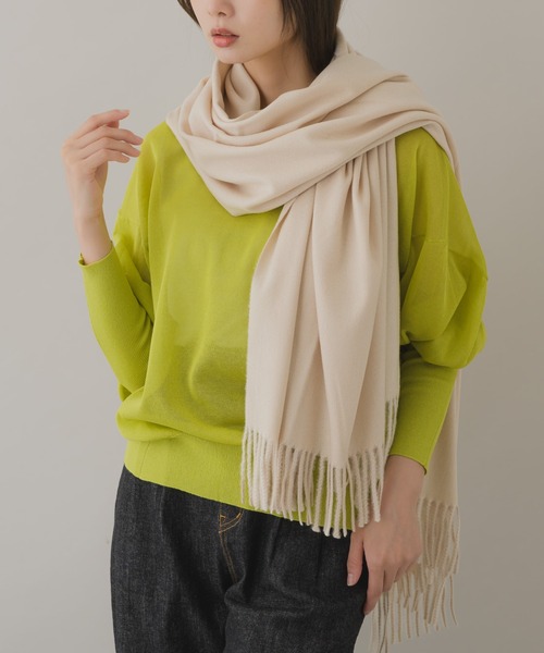 【KATHARINE ROSSセレクト】肌寒く感じる日にぴったり!中肉素材で気温調節がしやすい、カシミヤタッチの大判ストール。なめらかでちくちく感ゼロの触り心地。程よい厚みなので、保温性はありつつかさばりません。ふわっと羽織って使ったり、くしゅっと巻いてもキレイ。畳んで使うと首元に収まるので、モコモコするのが苦手な方にもおすすめです。