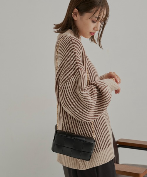 【バルキーストライプニットプルオーバー】 バイカラーのストライプ編みニットがアクセントになったニットプルオーバー POINT ・詰まりすぎないハイネックとドロップショルダーが抜け感をプラス ・コーデのアクセントになるストライプ柄の編地 ・ゆったりサイズ感なのでシャツやシアートップスなどのレイヤードスタイルもおすすめ◎ ・ふわっと肉厚感のある素材が暖かみを感じるアイテム ・ちくちくしない、ふんわりした着心地 COORDINATE ボリューム袖とゆったりシルエットなので マーメイドスカートやテーパードパンツなど細身のシルエットボトムと相性抜群◎ シンプルながらも存在感のあるアイテムなので デイリーに活躍してくれます。 透け感:なし 光沢感:なし 伸縮性:あり 裏 地:なし 厚 み:厚手 ニット/ハイネック/ボリューム袖/ビッグシルエット/オーバーサイズ --------------------------------------------------- ▶商品のお気に入り登録 完売カラーの再入荷通知やラスト1点の通知など お得なプライスダウンの情報も受け取ることができます。 ぜひご登録ください◎ ▶ブランドのお気に入り登録 新商品や再入荷など、ブランドの最新情報を いち早くお知らせします! ぜひご登録ください◎ --------------------------------------------------- ※撮影環境の光や角度により、実物と色味が異なる場合がございます。 また表示のサイズ感も実物とは若干異なる場合もございますので、予めご了承ください。 ※着用、お取り扱いの際は、商品に付いている品質表示を必ずご確認ください。
