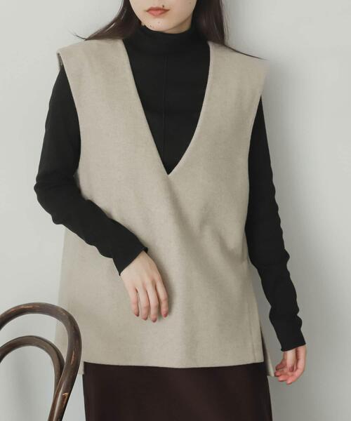 コーディネートに鮮度を加えるプルオーバータイプのジレ〇深めのVネックは首元をすっきり見せ、モードな印象に。〇サイドのスリットで抜け感をプラス。〇同素材のスカートとセットアップとして着用も可能。ジャンパースカートの様な着こなしに。stylingブラウスやロングスリーブTシャツなどとのレイヤードスタイルに取り入れやすいプルオーバータイプのジレ。セットアップのスカートと合わせれば、ジャンスカのような着こなしに。materialウールの様な風合いのカットソー素材。【シリーズアイテム】AA27-25B108ウールライクジャージタイトスリットスカート※この商品は素材の特性上、ピリング(毛玉)の出来やすい商品です。素材の特性上、完全に防止する事はできません。ご理解のうえ着用をお願い致します。※ピリングが発生した場合、一日着用したら何日か休ませるなど、ローテーションを考えて着用して下さい。※その他お取り扱いに関しましては、商品に付属のアテンションタグをご覧ください。※商品画像は、光の当たり具合やパソコンなどの閲覧環境により、実際の色味と異なって見える場合がございます。予めご了承ください。※商品の色味の目安は、商品単体の画像をご参照ください。▼お気に入り登録のおすすめ▼お気に入り登録商品は、マイページにて現在の価格情報や在庫状況の確認が可能です。お買い物リストの管理に是非ご利用下さい。素材感透け感:なし伸縮性:なし裏地:あり光沢:なしポケット:なしone