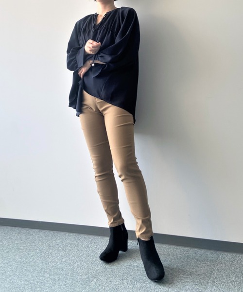 ノンストレスなストレッチ素材のベージックスキニーパンツ☆ 【Design】 程よく身体にフィットするシルエットのスキニーパンツ。 フルレングス仕様になります。 ファスナー開きでウエスト周りをスッキリ見せてくれます。 前後にはポケットが2個ずつついています。 シンプルなベーシックスタイルできれいめからカジュアルまで幅広い着こなしが出来アイテムです。 【Fabric】 ストレッチ性の効いたよく伸びる素材。 柔らかく、表面は光沢のある滑らかな肌触りです。 薄地ですが透け感無く軽い生地。 【Color】 ベーシックな4色展開 ・クロ(ブラック 黒色) ・グレー(ライトグレー 灰色) ・カーキ(グリーン くすみグリーン) ・ベージュ(キャメル) 【Coordinate】 スエット×ロンT×スキニーパンツでこなれ感のある大人カジュアルコーデに!! 中のロンTをチェック柄のシャツブラウスに替えれば秋らしいトラッド感のあるシーズンライクなコーデになります。 また、ロング丈のアウターやカーディガンと組み合わせればIラインシルエットのスタイルアップ効果も。 トップスにボリュームを持たせるとバランスの良いコーディネートに。 シューズを変えると雰囲気もガラっと変わります。 レディ派ならヒール、ナチュラル派ならバレエシューズ、カジュアルなら厚底スニーカー、メンズライクはブーツインなどそれぞれのテイストが楽しめる定番アイテムです♪ toucher du brise(トゥシェドブリス) ガーリーなテイストを取入れて上品で可愛い、 ほど良くエッジの効いたアイテムをベースにトレンドをミックスし、 大人女性の等身大のスタイルを提案します。 《お気に入り登録》でお得な情報がいっぱい ・「商品のお気に入り登録」で再入荷通知や、人気アイテムのラスト1点通知、セール通知も受け取ることができます。 ・「ブランドのお気に入り登録」でレディース新作アイテムや再入荷など、お得な情報を受け取ることができます!