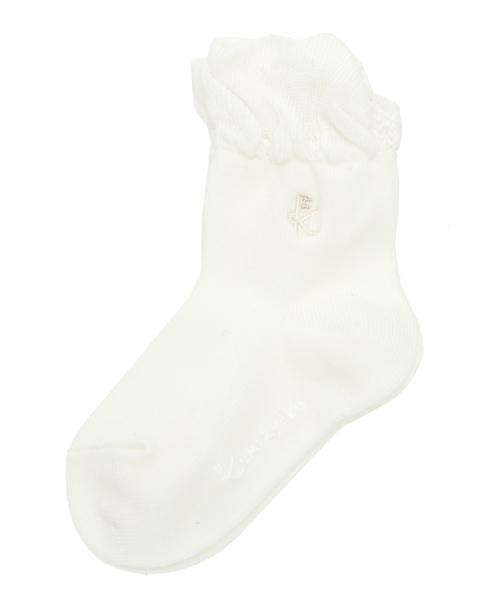 組曲ロゴがあしらわれたショートソックスのトドラーサイズです。ほどよいギャザー入りでフォーマルなシーンからデイリーまで大活躍する定番タイプです。