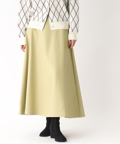 カジュアルにも、エレガントにも着られるシンプルなフェイクレザースカート 【デザイン】 ・広がり過ぎないすとんとした形のフレアシルエットで、大人っぽく着られる ・装飾のないシンプルなタイプなので、着回し力〇 ・ブーツとも相性の良い少し長めの丈感 ・ウエストの後ろはゴム仕様になっているので楽な着心地 ※ポケットなし 【素材】 ・柔らかくストレッチ性のあるフェイクレザーを使用 ・リアルな表情のフェイクレザーで良質感があります ※裏地あり 【カラー】 053カラーは、イエローがかったベージュ系のカラーです。 ※WEB限定サイズ:36(S),42(LL) こちらの商品は主に秋に着用いただける商品です。 モデル情報:身長165cm B72 W57 H84 着用サイズ:38(M) 店舗へのお問い合わせ商品番号:637-75033 ●製品寸法: 36(S):W60~70cm H98cm 総丈84cm 38(M):W63~73cm H102cm 総丈85cm 40(L):W66~76cm H107cm 総丈86cm 42(LL):W70~80cm H112cm 総丈87cm 備考: