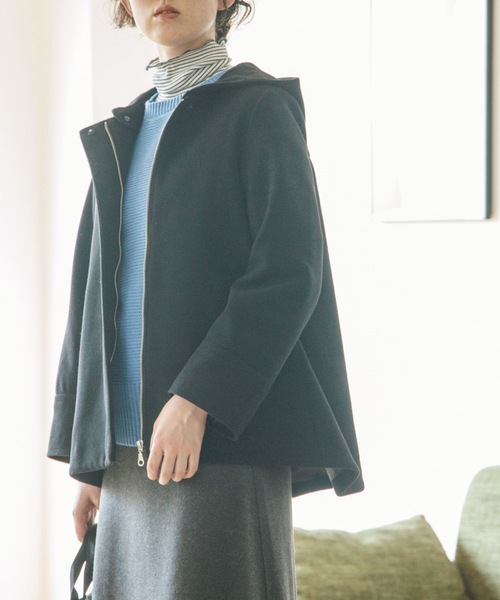 ■Point&detail:着回ししやすいミドル丈。 丈に前後差をつけて前身はすっきりとした印象に。 フードは取り外しができるのでノーカラーとフーディの2WAYのデザインが楽しめます。 ポケットはフラップなどを無くし身頃はすっきりとしたデザインに仕上げました。 スマホの出し入れもしやすい大きめのポケットサイズもポイントです。 ※ポケット数:横×2 ■Fabric/Function:柔らかさと軽さのあるウールライクな素材。 起毛感のあるあたたかみのある素材です。 展開カラーの杢ブラウンはイエローベースのカラーもブルーベースにも合わせやすいニュアンスカラーで一押しのカラーです。 そのほか着回ししやすいベーシックカラーで展開しています。 ※総裏仕立て ■Coordinate:着回ししやすい着丈なのでパンツでもスカートでも合わせやすいアイテムです。 こちらの商品は主に冬に着用いただける商品です。 モデル情報:身長166cm B80 W59 H86 着用サイズ:12(M) 店舗へのお問い合わせ商品番号:040-95008 ●製品寸法: 11(S):着丈70cm B99cm 袖丈59cm 袖幅37cm 肩幅38cm 12(M):着丈72cm B102cm 袖丈60cm 袖幅38cm 肩幅39cm 13(L):着丈73cm B105cm 袖丈61cm 袖幅38cm 肩幅40cm 14(XL):着丈74cm B108cm 袖丈61cm 袖幅39cm 肩幅41cm 備考:重量:12(M)約765g(サンプル重量)