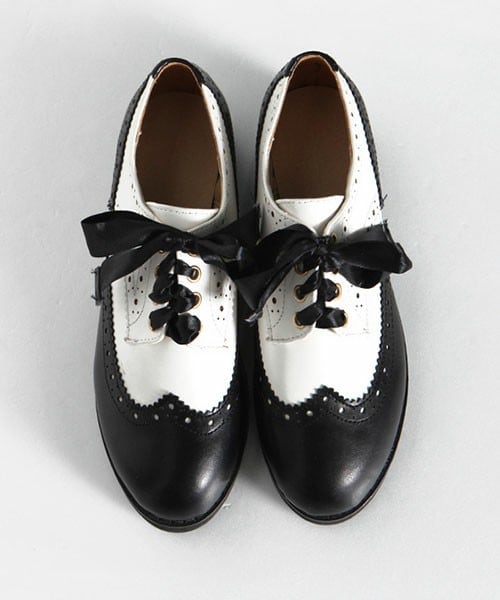 ホワイトとブラックカラーのモダンな色使いがポイントのオックスフォードシューズ。ホワイト×ブラックの色使いは主役級アイテムながら、どんなコーディネートにもなじみます。パンチングとレースアップがポイント。マニッシュにもガーリーにも使える一足です。
