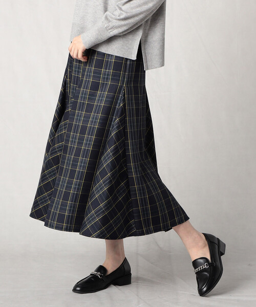 タータンチェックのマチ入りフレアスカートです。 トーンを抑えたタータンチェック柄で、ポリエステルのツイルをベースにしたシワになりにくい素材です。 デザインは、セミフレアのスカートに三角のマチを入れ、 途中からヘムに向け、大きなフレアをとっています。 動きが出た時に美しい形に見えるように設定しています。 ウエストは着脱が楽なゴム仕様です。 同素材のジャケット(80-20JA02-202)と合わせたセットアップスタイルはもちろん、単品としても着まわしに活躍します。 …………………….…….…….… 透け感:なし 厚さ:ふつう 伸縮性:なし 光沢感:なし 裏地:あり ポケット:なし 洗濯方法:ドライクリーニング …………………………..…….… ※画像の商品はサンプルとなりますので実際の商品と仕様、加工、サイズが若干異なる場合がございます。 ※こちらの商品はFIVE FOXes独自の採寸方法となっています。 本サイトのサイズガイドと採寸方法が異なる場合がありますのでご了承ください。
