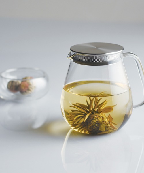 3~4人分におすすめな720mlサイズ 洗練されたキッチン&テーブルウェアを展開している「KINTO」が展開する 親しみやすいゆったりとしたフォルムでどんなシーンにも、どんな空間にもさりげなく溶け込んでいくUNITEA。 カップやジャグの透明感はドリンクを美しく透かし、茶葉がゆっくりと開く様子などをじっくりと眺めて愉しむことができます。 すべての指でしっかりと握ることができる、ゆったりとしたハンドル。 大きな手でも小さな手でも、持つ位置を限定することのない、安定感のある使い心地です。 リッドとストレーナーが一体となった構造で、ストレーナーは細かい茶葉が濾せ、リッドはお茶を注ぐ時に傾けても落ちにくくなっています。 パーツが少なくお手入れが簡単で、毎日の生活の中でカジュアルに活躍する、使い勝手にこだわったティーポットです。 ※お取り扱い上のご注意※ 【ポット】 品名: 耐熱ガラス製器具 / 使用区分: 熱湯用、電子レンジ用、直火用 / 耐熱温度差: 150℃ / 電子レンジ、直火 (ティーライトキャンドルのみ)、食洗機使用可 / 中国製 ○使用区分以外には使用しないでください ○ティーライトキャンドル以外の炎で直火にかけないで下さい ○固形燃料は使用しないでください ○電子レンジで加熱しすぎたり、空焚きにならないようご注意ください ○洗浄の際はクレンザーやたわしを使用しないでください ○ガラスの急冷は破損の原因となりますので熱いうちに濡れた布で触れたり、濡れた場所に置かないでください ○製造上の特性により、サイズや形状が各々多少異なります 【蓋】 18-8 ステンレス鋼、ポリプロピレン、シリコーンゴム / 耐熱温度: 140℃ / 食洗機使用可 / 中国製 ○電子レンジでご使用いただけません ○ステンレスの錆を予防するために汚れや水分は早めに落とし、十分に乾燥させ、他の金属との接触を避けて収納してください