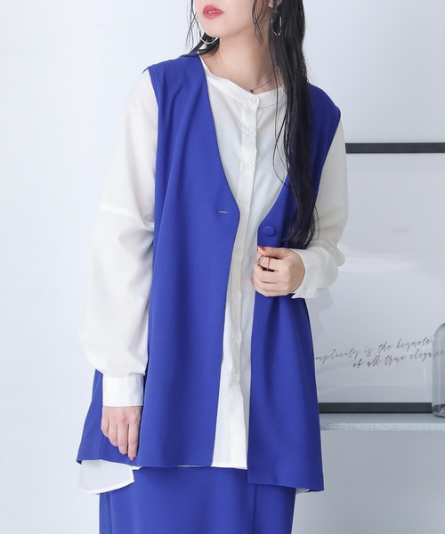 『こなれ見え"確実"。』いつものコーデにプラスして着映え力高まる、優秀ジレベスト♪深めのVネックデザインですっきり見え。ヒップも隠れる長め丈に、広めのアームホールは合わせるトップスを選ばない優れモノです。楽なのにキレイ見せを叶える伸縮性のあるジョーゼット生地は、さらっとして肌触りも良くロングシーズンお洒落の味方に。さらに、同素材のスカートを合わせたセットアップスタイリングもおすすめです。今、好きな物、興味あることを自由な発想で表現できる≪ n'OrLABEL ≫。「実用性と機能性、そして遊び感覚」、多面性を楽しめるピュアでモードなデザインライン。ワンランク上のお洒落を叶える≪n'OrLABEL≫カットジョーゼットジレベストです。▼同素材のおすすめセットアップ『フロントスリットタイトスカート』商品コード 68087957ブランド品番 22-0600h(sin0399)