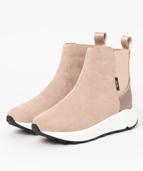 【JETEEセレクトアイテム】スニーカーソール×スエード調の生地がスポーティーなチェルシーブーツです。ストレッチを利かせたデザインが足当たりの良さを実現。アッパー部分と踵で異素材を使用したデザインが個性的なアクセントに。カジュアルさも取り入れつつ、女性らしい落ち着きのある足元を演出します。3cmのヒール高に1.7cmのインウェッジが加わる事で、脚長効果も◎<JETEE(ジュテ)>マニュアル通りではつまらない、自分なりのファッションを楽しむ女性に向け2006.S/S からブランドをスタート。そんな女性像を色で例えると、何色にも染まらない色、強い主張を感じさせる・・・黒 JETエッジが利いていてモードな感じ・・・ EDGEラフでカジュアルな感じ・・・ EASY時に他の色を引き立てつつ、他の色には染まらない黒のように、EDGE /MODE/STREETカルチャーを様々に取り入れ発信する。JET(黒)からスタートするデザインの表現。《インフォメーション》◆商品のお気に入り登録完売していても再入荷時に再入荷通知を受け取ることができますので、是非ご登録ください。◆ブランドのお気に入り登録新商品や再入荷などの情報を受け取ることができますので、是非ご登録ください。