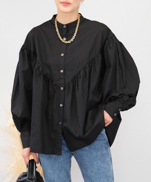 旬なシルエットで大人に着こなせる1枚。 サラッと着るだけで空気感のある程よく立体的なシルエットのブラウス。前後に施されているVギャザーとボリュームスリーブがレディライクな雰囲気で、1枚でトレンドライクな着こなしが叶います。 裾もふわっと程よく広がっているので、タイトめなボトムスとの相性◎。スラックスなどと合わせるとこなれ感のあるコーデに。 また首元がすっきりとした印象のスタンドカラーシャツは、1枚での着用はもちろん、ニットやベストと重ね着しても今っぽくコーデが決まる、着回しがきく長袖シャツです。 ■コーディネートアイテム スカート…bt09q05125 スカート…bt29d04429 パンツ…bg09c04839 ■商品仕様 コットン生地 裏地…なし 伸縮性…なし 透け…淡色のみあり ポケット…なし 付属品…なし 着脱…前開きボタン ※ボタンの仕様は変更される場合がございます。 ※繊細な生地ですのでお洗濯などのお取り扱いには十分ご注意ください。詳しくは下げ札をご覧ください。 ※着用の際、摩擦や発汗により衣類やバッグ等に色移りの恐れ(特に淡色系のもの)がありますので、十分ご注意下さい。 ※淡色は透けますのでインナーの着用を推奨します。 【ご購入前に必ずご一読下さい】 ※モニタ環境によって、商品の色合いが多少異なる場合がございます。 ※色落ちの恐れがありますので、他のものと分けてお洗濯して下さい。 ※商品をお安く提供させて頂く為、検品後のアイロン掛けは省略させて頂いています。 発送時も簡易梱包の為、お受け取り時にたたみ皺があると思いますがご了承下さい。