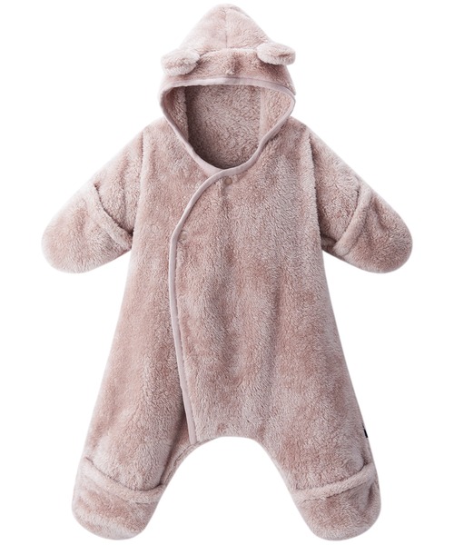 【素材】ボリュームたっぷりで、表面、裏面とも毛足の長いポリエステル100%のボアフリース。寒い季節にも重宝する軽くて温かい素材です。 【カラー】グレーピンクとライトベージュの合わせやすく、使いやすい2色展開、ベビーからキッズまで幅広く展開しているので、リンクコーデを楽しむのもおすすめ。 【仕様】広げると星型になる、とってもキュートなくま耳付きのおくるみです。毛足の長い両面ボアなのでふかふかであたたかいです。袖口と足口部分はくるんと返すと手足を包むカバーになり、厳しい寒さからベビーを守ります。2股のデザインなのでベビーカーにも乗せやすく、冬のおでかけに活躍します。 【備考】手足カバー仕様 【ポケット】なし 【伸縮性】あり 【透け感】透けない 【クリーニング】洗濯機洗い可 【裏地】なし モニター・環境等により実際の商品と色味が多少異なって表示される場合がございます。 また、生産時期により色味が若干異なる場合がございます。予めご了承ください。