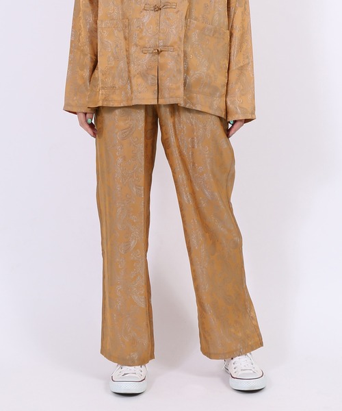 さらっとした落ち感と微光沢感のあるレーヨンポリエステル布帛素材で仕立てたチャイナ柄パンツ!! 存在感のあるアイテムなので、シンプルなTシャツ・スウェット・パーカー・ニット合わせも◎ 同生地PN22AW-021のチャイナ柄シャツを合わせたセットアップのスタイリングもおススメです。 ユニセックス着用もおススメ!! ★《お気に入り登録》でお得な情報がいっぱい★・「商品のお気に入り登録」で再入荷通知や、ラスト1点の通知、セール通知も受け取ることができます。 ・「ブランドのお気に入り登録」で新商品や再入荷など、いち早くブランドのお得な情報を受け取ることができます。