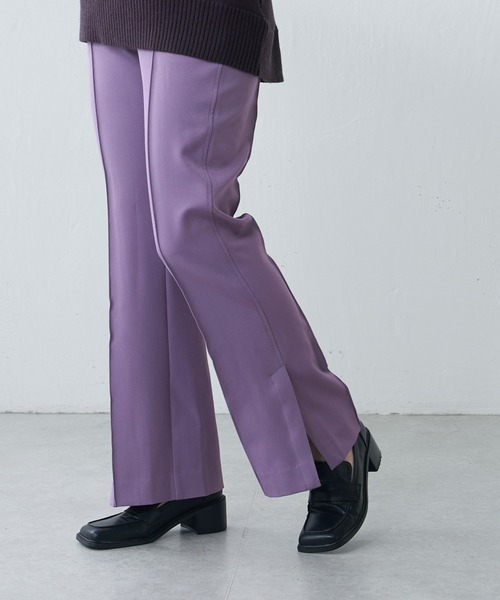 Lui's FEMME(ルイス ファム)オリジナル22AWコレクションより、ハイウエストサイドベンツパンツの登場です! 【素材】 ほどよい肉感とキックバックのある生地を使用。履き心地のよさときれいなシルエットを兼ね備えた仕上がりです。 【デザイン】 程よい肉感とハリで身体のラインを拾い過ぎず、肌触りもさらっとした履き心地のいい一品。細すぎず太すぎずのラインとベンツスリットで自然とできるセミフレアシルエットがどんなトップスにも合わせやすくコーデできる万能パンツ。センターシームにピンタックをとっているのでプレスしたようなきちんと感が長く楽しめるだけでなく、脚をまっすぐきれいに見せてくれる美脚効果も抜群!カラーによって異なる表情を見せ、お好きなスタイルやお手持ちのアイテムに合わせて選べる3色展開。定番のブラックに柔らかい印象のアイボリー、トレンドのパープル。細見えするシルエットながら、ウエストは後ろゴムの仕上げでイージーにリラックスして履けるのも嬉しいポイントです。 【コーディネート】 ONOFF兼用で履ける美シルエットパンツ。バランスがとりやすいアイテムだからこそ幅広いトップスと合わせてスタイリングを楽しめます。シャツやカットソーをタックインしてすっきりと着こなすのはもちろん、ゆったりとしたシルエットのニットやスウェットを合わせた抜け感のあるコーデも。足元はスニーカーと合わせるのはもちろん、パンプスやブーツで女性らしさを取り入れるのがおすすめ。カジュアルからモダンなスタイルまで様々なスタイリングが楽しめる大人の抜け感パンツです。トップスを選ばず、脚を美しくみせてくれるシンプルなパンツはワードローブに欠かせないアイテムです。 【ブランド】 Lui's FEMME(ルイス ファム) 凛とした芯のある女性。 自立した、女性のワードローブをイメージ。洗練されたかっこよさの中に、女性らしさ・かわいさ・セクシーさを持つ。自分自身のスタイル(自分らしさ・個性・生き方・感覚...)を表現できるひとつの手段としての服。肩肘張らない、心地よいリラックス感のあるスタイルを上質な素材、優雅なシルエットで提案。 ■商品のお気に入り登録(ハートマーク) 完売カラーの再入荷、ラスト1点の通知、セールの際の通知を受け取れます。 ■ブランドのお気に入り登録 新商品の入荷など、いち早くブランドのお得な情報を受け取れます。 是非ご利用ください。 ※掲載画像の商品の色味は、屋内の光の照射や角度により実物と色味が異なる場合がございます。 予めご了承ください