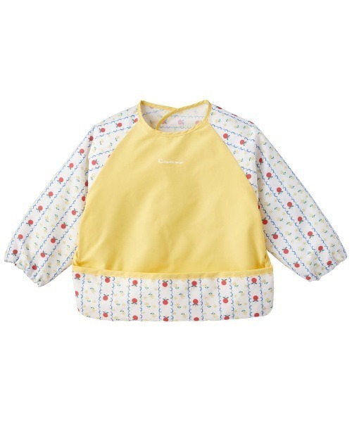 りんごとお花をストライプに配した女の子におすすめのエプロン。ウエアを袖まですっぽりカバーする長袖タイプなので、お食事はもちろん、洋服を汚したくないシーンで幅広く使えます。ベビーギフトにもおすすめです。