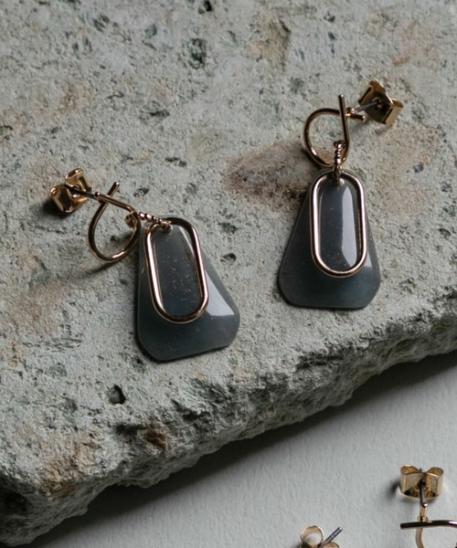 【KATHARINE ROSSセレクト】<br> ニュアンスカラーのストーン風モチーフとメタルを組み合わせたピアス。 大きすぎないサイズが大人の耳元にちょうどいい。 どんなコーディネートにも合わせやすく、さりげないおしゃれ感をプラスしてくれます。 上品で大人らしい仕上がりになるので、カジュアルなオフィス使いからお出かけまでデイリーにおすすめ。