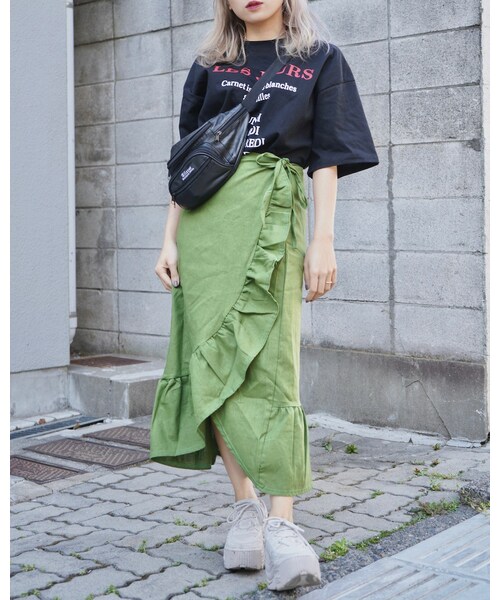サイズFREE 総丈77cm ウエスト70cm (COLOR)1color ・GREEN (CONDITION RANK) SS:新品アイテム (DETAIL) ・ラップ(巻き)スカートデザイン ・ウエスト紐でサイズ調整可能 ・素材:リネン20% ポリエステル80% 商品コード:2201190400542