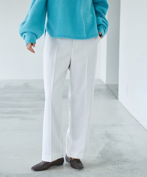 【素材】 ※カラーにより素材が異なります。 無地…定番の2/60ウールサキソニー(表地)毛99% ポリウレタン1% (裏地)ポリエステル100% ガンクラブチェック柄…2/72高密度ウール素材(表地)毛100%(裏地)複合繊維(ポリエステル)54%、ポリエステル46% 3色ともソフトで膨らみがあり、真冬でも温かみを感じる素材感。無地はストレッチが入っていますので、快適に着用できるのもポイントです。 【デザイン・シルエット】 ウエストにサイドゴムをいれたストレートワイドシルエット。ヒップ、腿周りをすっきりしたサイズ感でおつくりしていますので、スタイル良く着用できます。ON-OFFどちらでも着用できるシルエットでどんなアイテムとも合わせやすい形ですので汎用性の高いパンツです。 【カラー】 無地はホワイト、ブラック。チェックはベージュベースのガンクラブチェック柄の3色展開。 【おすすめのスタイリング】 コートやニットスタイルには欠かせない、定番のサキソニーのワイドパンツ。どんなスタイルでも決まるデザインです。きれいめな印象になるので、お仕事などのオフィススタイルや、お出かけスタイルにも◎ ---------------------------- 透け感:白のみ少しあり、他なし 裏地:あり 伸縮性:無地はあり、チェックはなし 光沢感:なし 生地の厚さ:中肉 ポケット:あり 開き方:ファスナー 洗濯方法:ドライクリーニング ---------------------------- 【モデル情報】 モデル身長:171cm着用サイズ:38 ※画像の商品はサンプルです。 実際の商品と仕様、加工、サイズが異なる場合がございます。 ※撮影場所やライティング、お使いのモニター環境によって色の見え方が異なる場合がございます。 ※商品のカラーは画像の色味をご参照ください。動画は仕様説明のため、色味が実物と異なる場合がございます。
