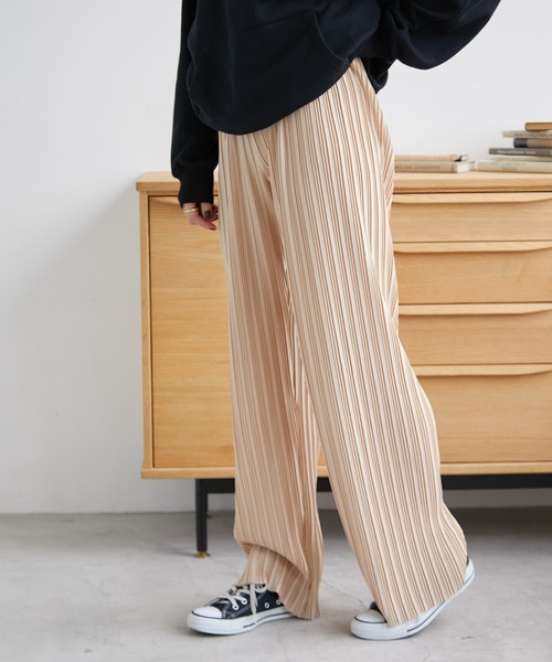 1枚でコーデを華やかにしてくれます。デイリーに着用しやすく、コーデのアクセントになってくれます。お好みに合わせて丈をカットできます。ほつれ軽減させるステッチを入れていますので、カット後はそのままご着用頂けます。【デザイン】程よくゆったりとしたシルエットで抜け感のある印象に。ウエストゴムでストレスなく着用していただけます。【スタイリング】リブニットやニットカーディガを合わせたコーデはオンオフ問わず着用していただけます。パーカーやスウェットと合わせても、プリーツがカジュアルすぎない印象に仕上げてくれます。ブラウスと合わせたエレガントなコーデは、フォーマルな場面やオフィススタイルにも着用していただけます。オーバーサイズのニットと合わせることで程よくガーリーで抜け感のあるコーデが完成します。トレンチコートやジレと合わせてスタイリッシュな印象に。休日のルーズなコーデにも、お出かけコーデにも着こなせるパンツです。シンプルなデザインが、合わせるアイテムを選ばず、異なる雰囲気のコーデをお楽しいいただけます。ロングシーズンでお使いいただけます。【色展開】・ブラック(黒 黒色)様々な色合いと相性が良く、着回しに使えるカラー。・ベージュ(茶 茶色)大人の印象を与える、落ち着いたカラー。・ブルーコーデのアクセントになる、ポップなカラー。【サイズ展開】・Mサイズ・Lサイズ【お買い物をお得にもっと楽しんで頂くために】▼商品のお気に入り登録▼完売カラーの再入荷通知や、ラスト1点の通知、プライスダウンしたセール通知も受け取ることができます。▼ブランドのお気に入り登録▼ECRIREの新作や再入荷等、いち早くブランドのお得な情報を受け取ることができます