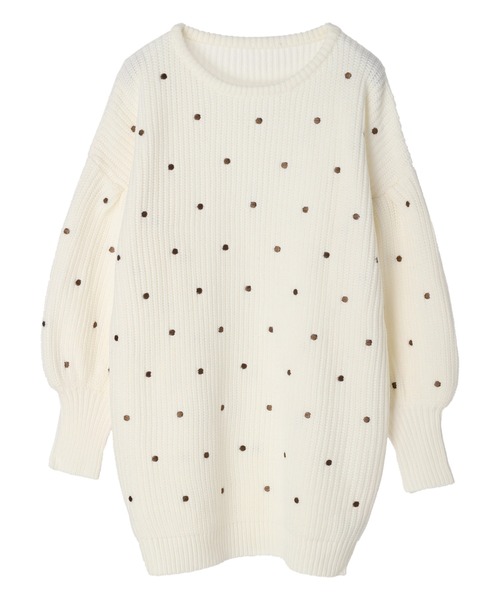 ニットの温かな風合い漂うワンピース。ふんわりとしたボリュームスリーブは、立体的なシルエットを作り出します。ドット柄がスタイリングにフェミニンな印象をプラス◎短めの丈感になっておりロングブーツと合わせたコーディネートもおすすめです。ロングボトムとの相性も抜群なのでチュニックとしての着こなしも楽しめます。